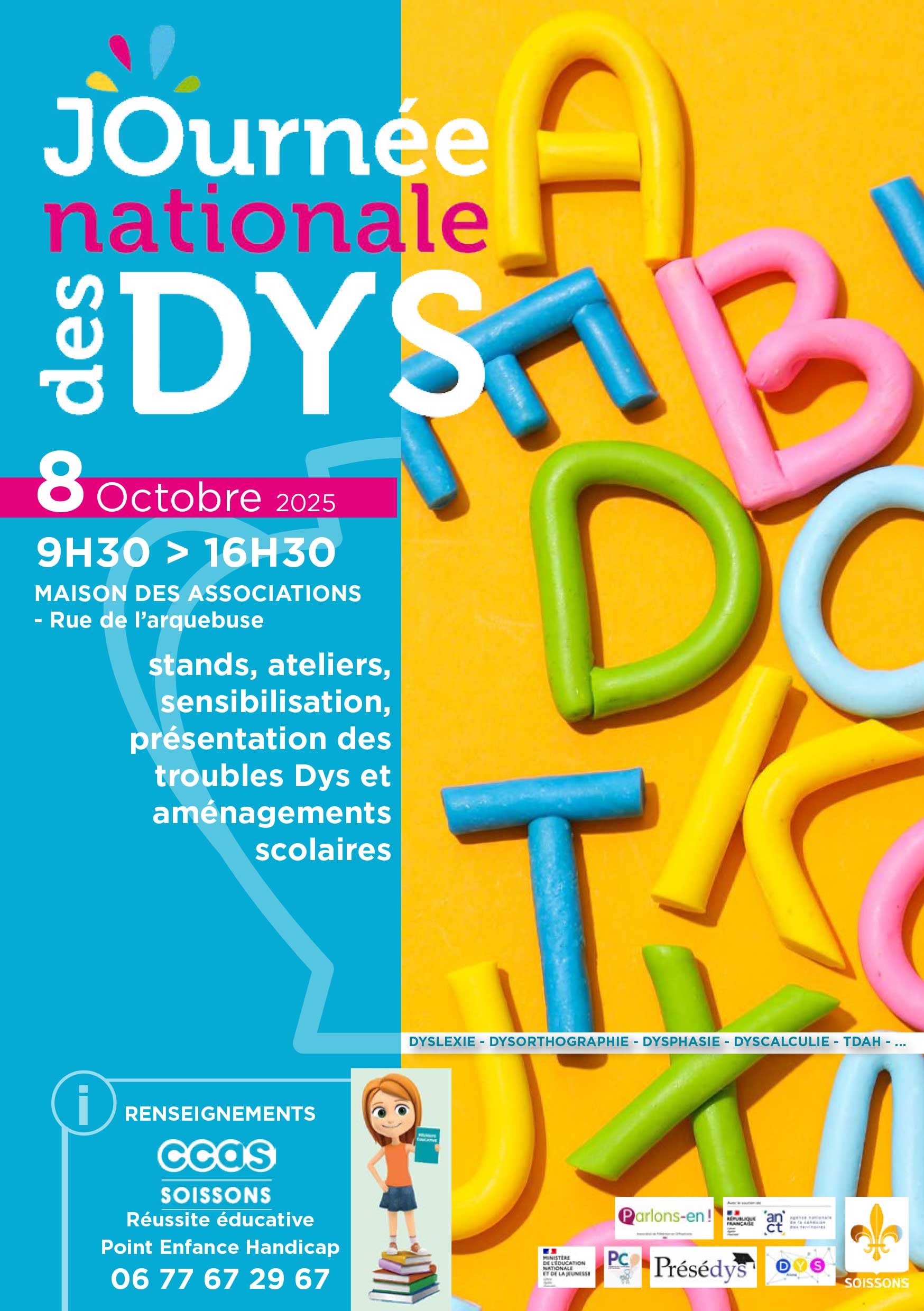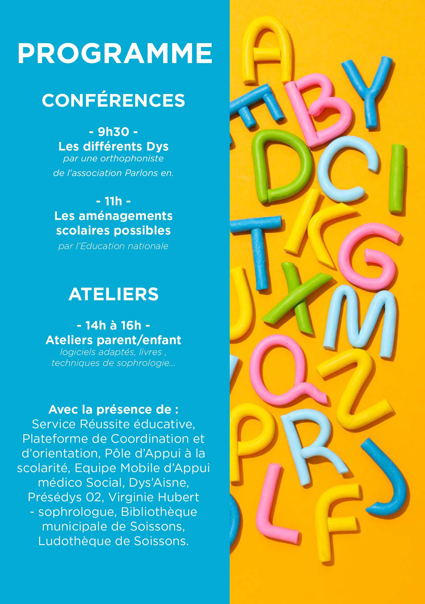 Service Réussite éducative, Plateforme de Coordination et d’Orientation, Pôle d’Appui à la scolarité, Équipe Mobile d’Appui Médico-Social, associations Dys’Aisne et Présédys 02, Virginie Hubert (sophrologue), la Bibliothèque municipale et la Ludothèque de Soissons.