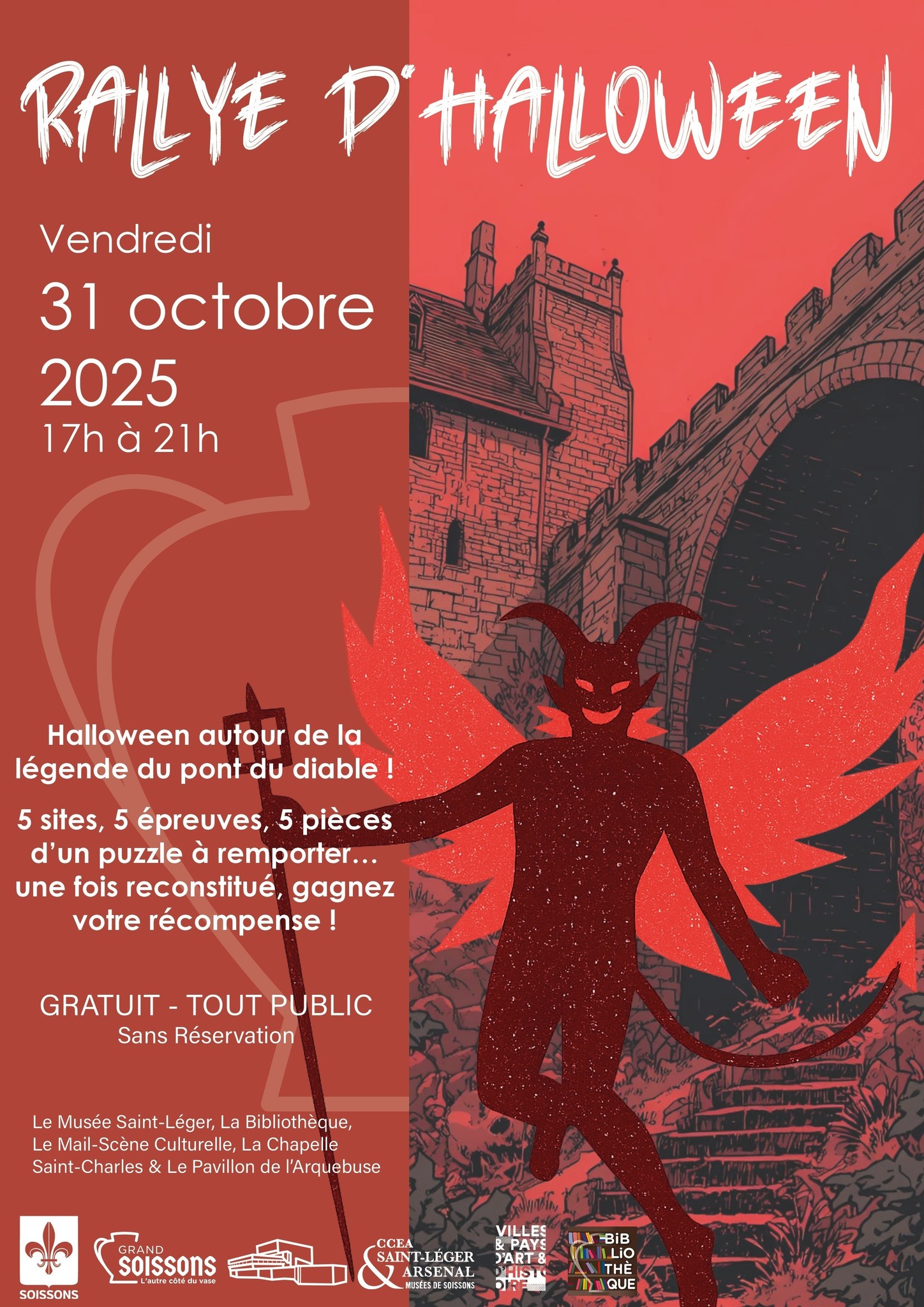 Cette année, la légende du Pont du Diable revient hanter la ville… Pour conjurer le sort, les apprentis sorciers, fantômes et autres héros courageux devront résoudre un grand rallye maléfique à travers cinq sites emblématiques de Soissons.
