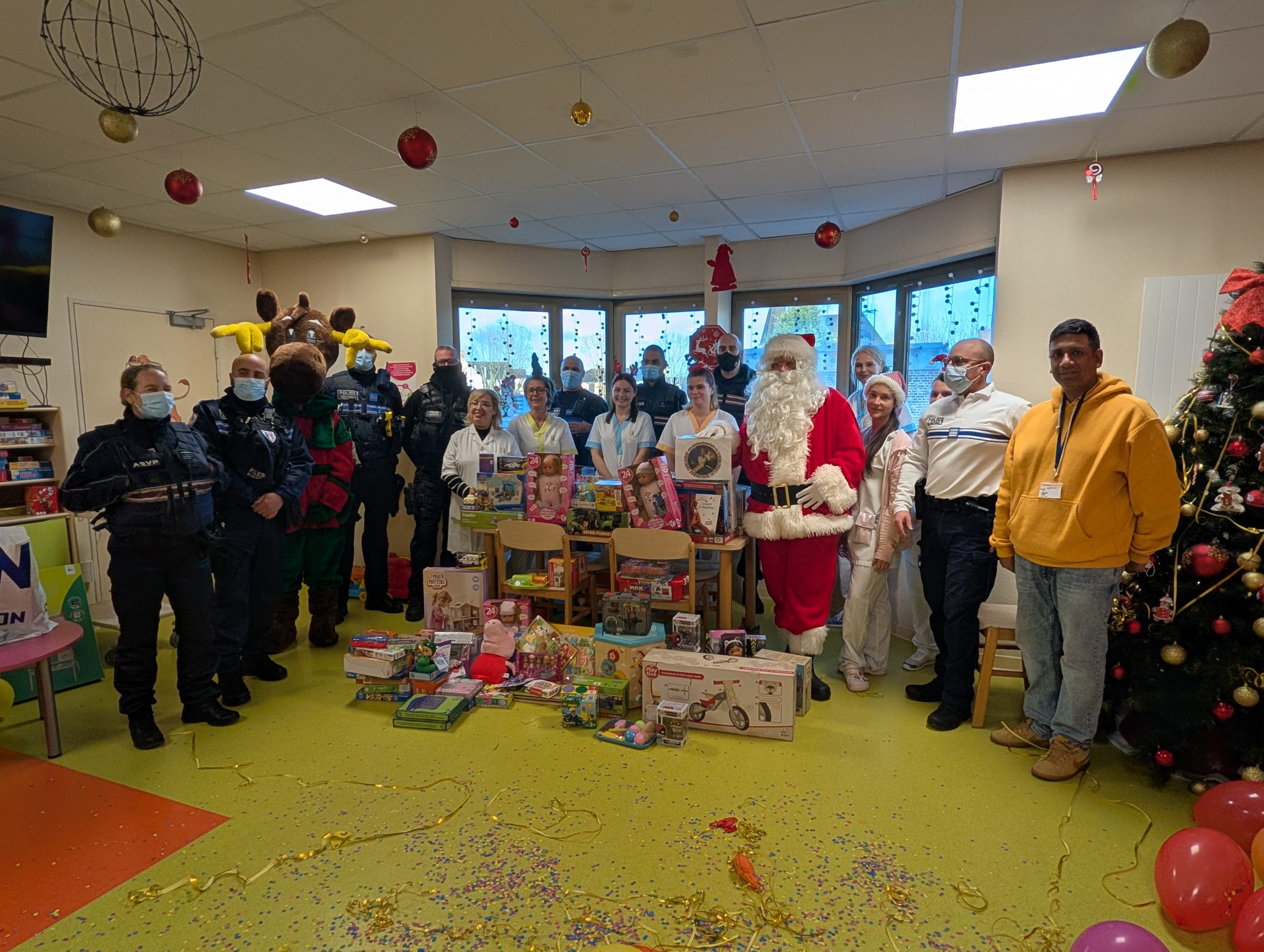 Sous l’impulsion de Guillaume Droineau, directeur de la Police Municipale, neuf agents se sont mobilisés pour cette action solidaire, apportant sourires et réconfort aux enfants présents, accompagnés de leurs parents, en cette veille de Noël.