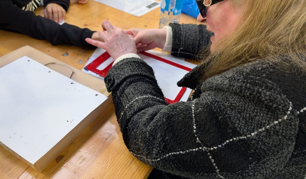 Grâce aux machines Perkins et aux tablettes adaptées, les participants ont appris à écrire leur prénom en braille.