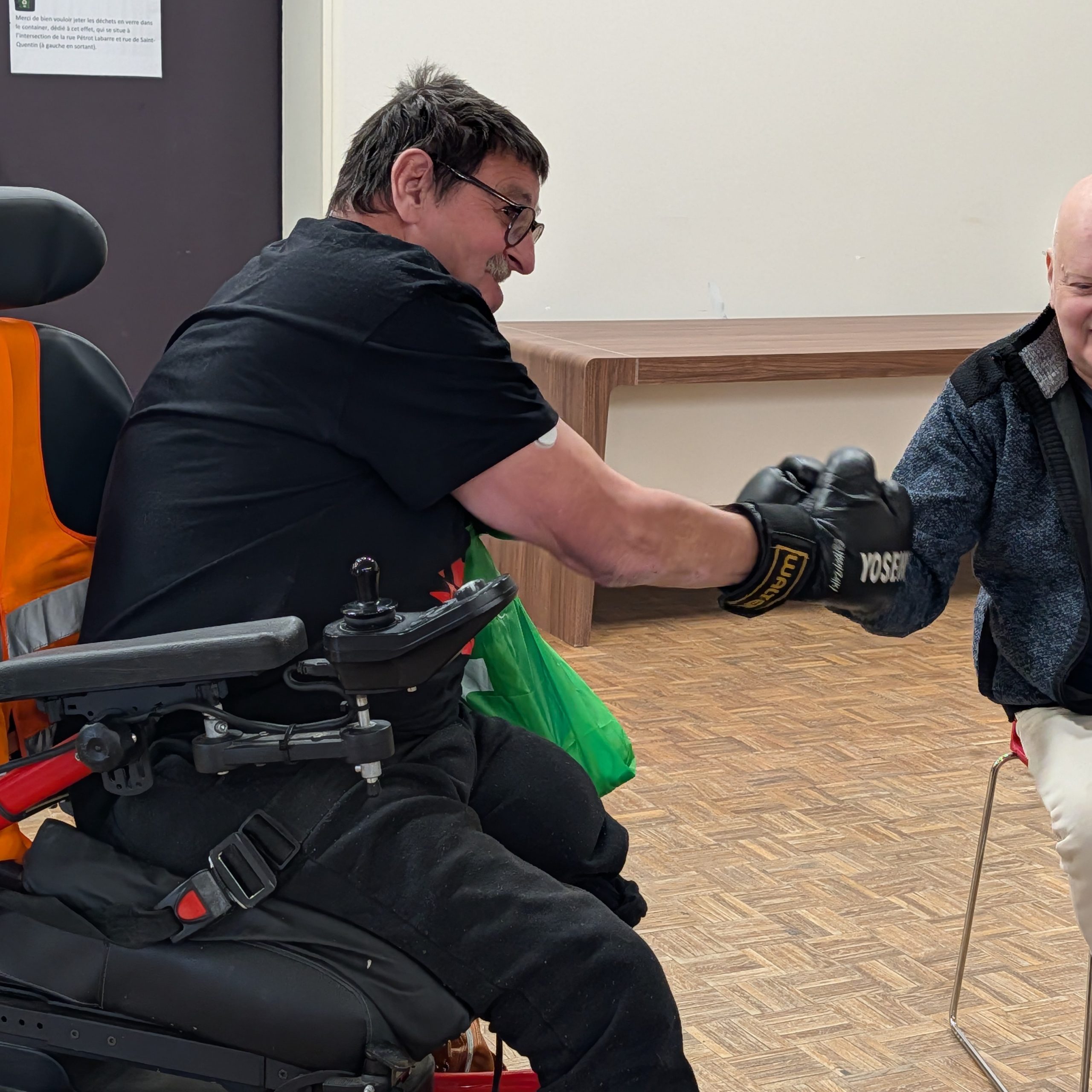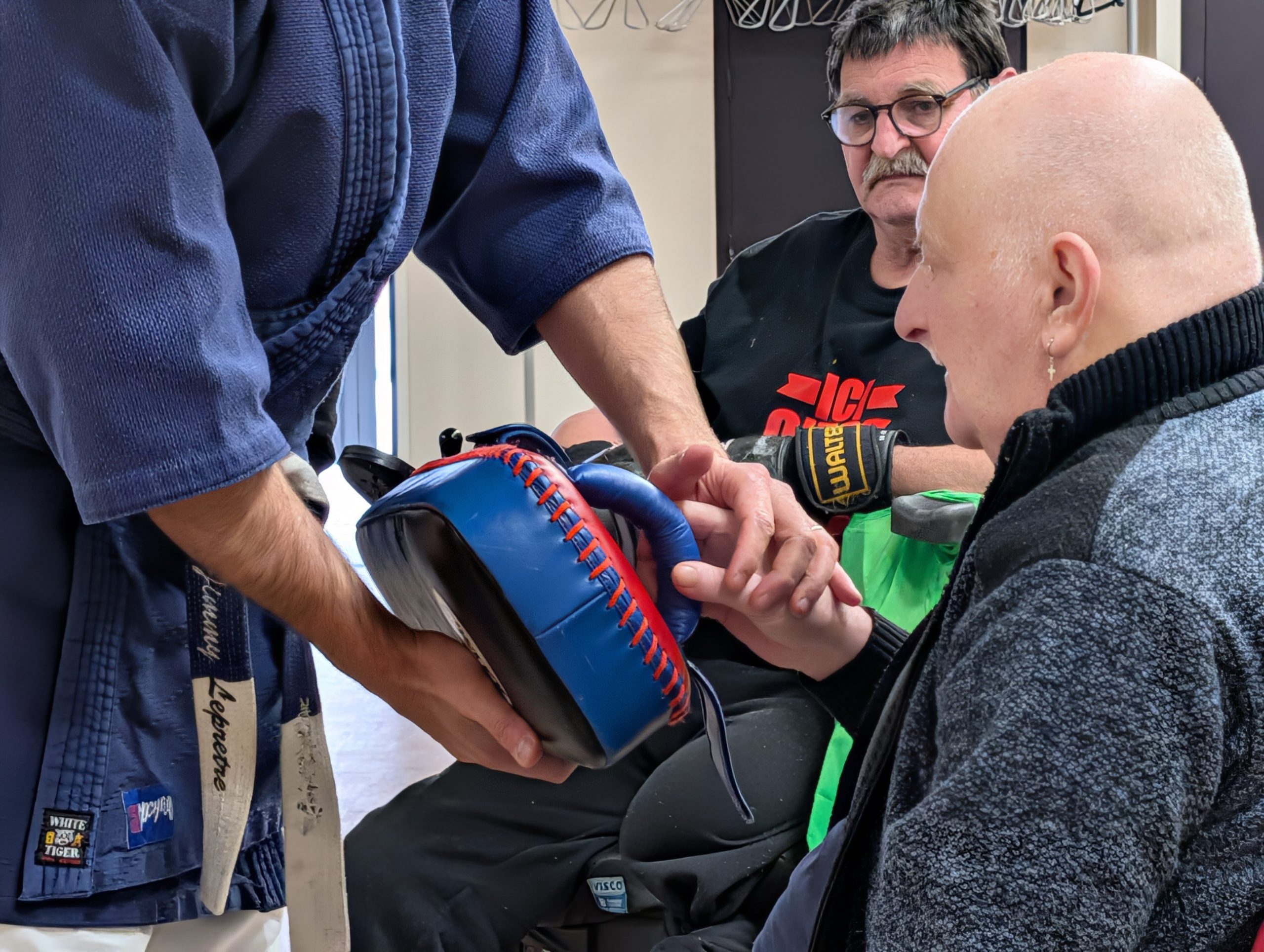 Parmi les participants, Denis, en fauteuil, a pleinement pris part à la séance. Entouré des adhérents du Fil d’Ariane, habitués de ces temps d’échange, il a pu tester les mouvements, expérimenter et surtout… profiter.