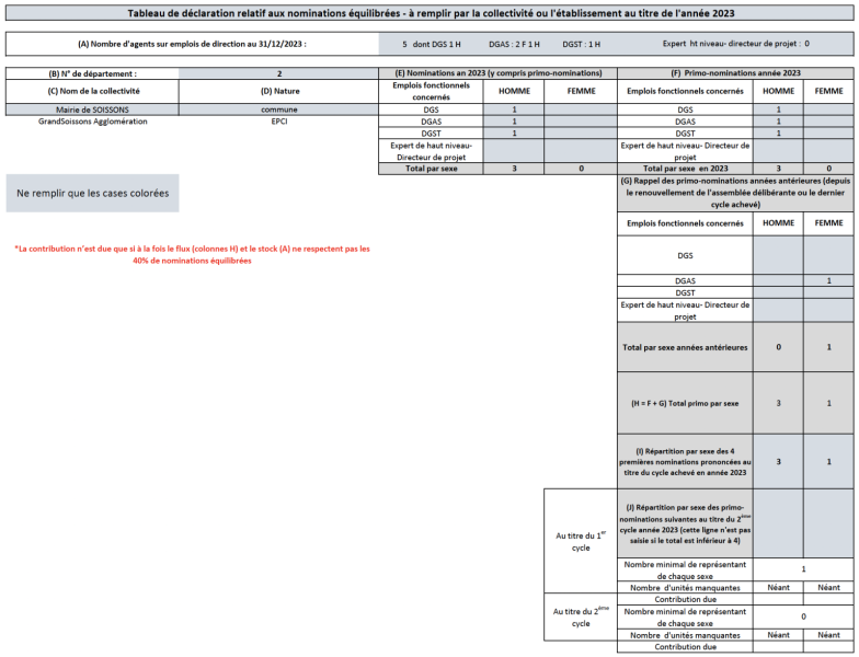 Tableau des nominations équilibrées